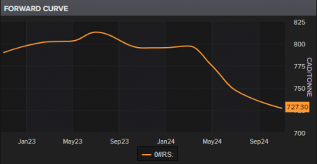 The forward contract term structure shows that traders expect prices to remain sticky until mid-next year.